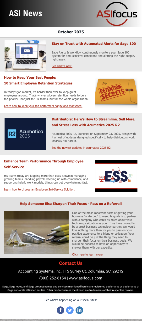 Whether you’re looking to restructure your accounting operations, resolve inventory issues, quit using MS Excel spreadsheets for reporting; or find a replacement for your old accounting system, we’d love to talk with you.